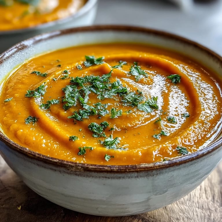 Save to Pinterest There's something about serving soup that feels like an act of care, and this particular soup carries that feeling in every bowl. The color alone—this burnished orange—seems to promise good things.