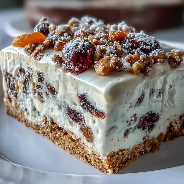 You can swap the dried fruits for fresh berries if you're serving it in summer, or use candied peel for a more traditional Christmas vibe. I've also made this with chopped dates and a pinch of cardamom, which turned it into something almost Middle Eastern. To freeze, wrap individual squares in parchment and stack them in an airtight container; they'll keep for up to a month and thaw beautifully in the fridge overnight.