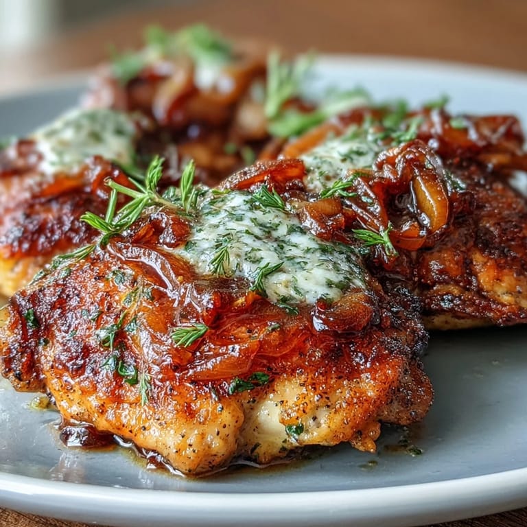 Save to Pinterest My grandmother's kitchen had a particular smell on Sunday afternoons—onions caramelizing in cast iron, chicken skin crisping to golden perfection, the kind of aroma that pulls you in before you even realize what's cooking. Years later, I found myself standing in my own kitchen, trying to recreate that exact feeling, and what emerged was this smothered chicken with onion gravy, a dish so fundamentally comforting it feels like a warm hug on a plate. The beauty of it is how simple the magic is: good chicken, patient cooking, and onions that transform into liquid gold under gentle heat. There's no pretense here, just honest Southern cooking that reminds you why food matters.