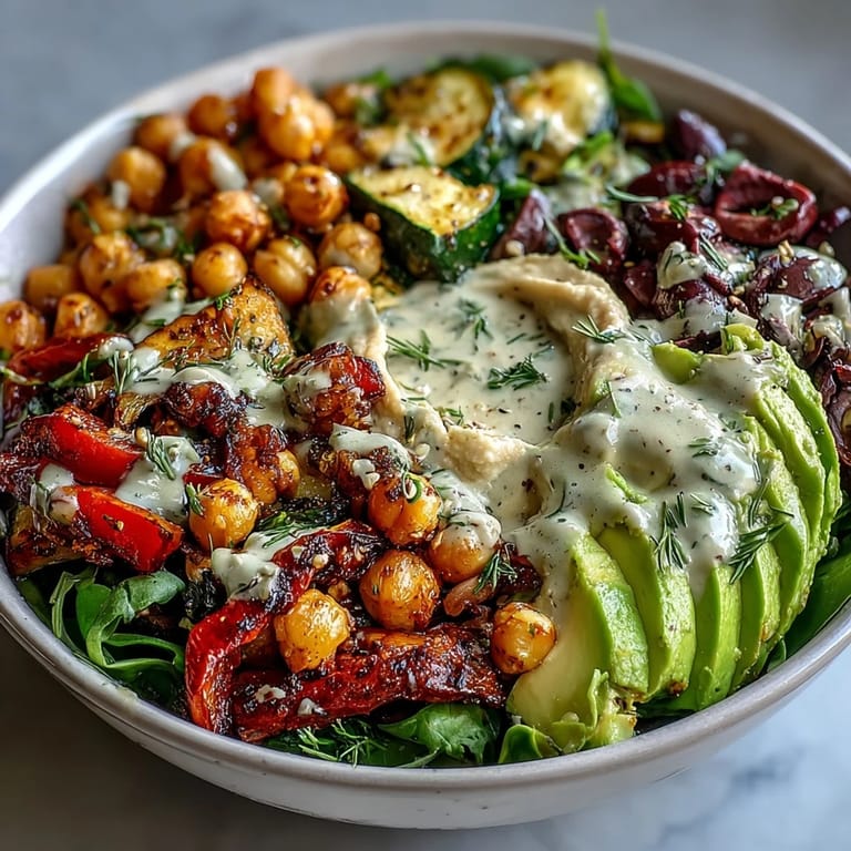 What makes this recipe feel less like a task and more like an experience is that you're essentially conducting a flavor orchestra where every ingredient has its moment. The warm vegetables arrive like a bass note, the cool creamy avocado provides contrast, the salty olives cut through richness, and the tahini dressing brings it all home. There's real joy in knowing you can control every element, adjusting ratios based on what you're craving in that exact moment.